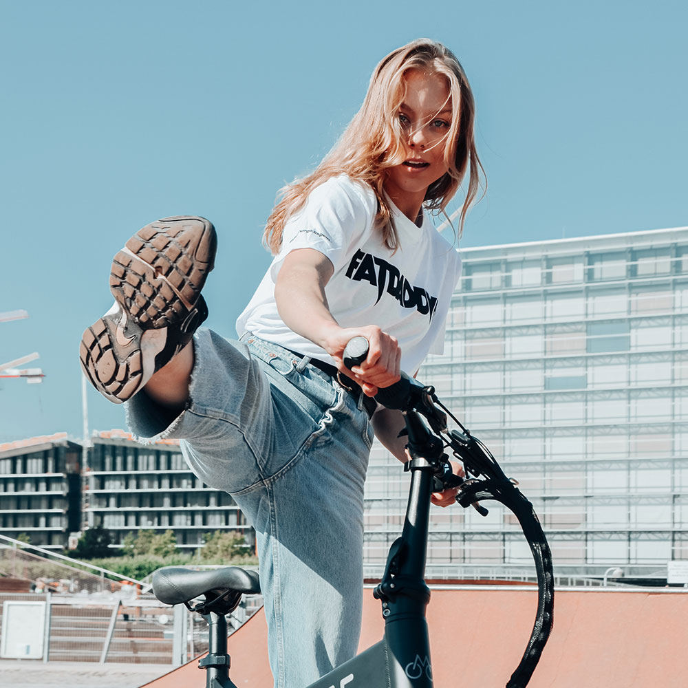 Uanset om du er på vej til en køretur eller bare vil have en cool og komfortabel t-shirt, er Fatdaddy t-shirten det perfekte valg. Det håndtrykte logo sikrer, at hver t-shirt er unik, og den hvide farve med det sorte logo giver et tidløst look, der passer til enhver garderobe.