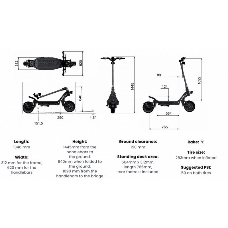 - Motorer: Dobbelt 1000 W børsteløse motorer (2000 W samlet) med en peak effekt på 5040 W